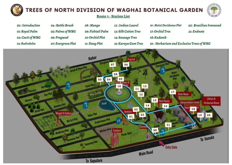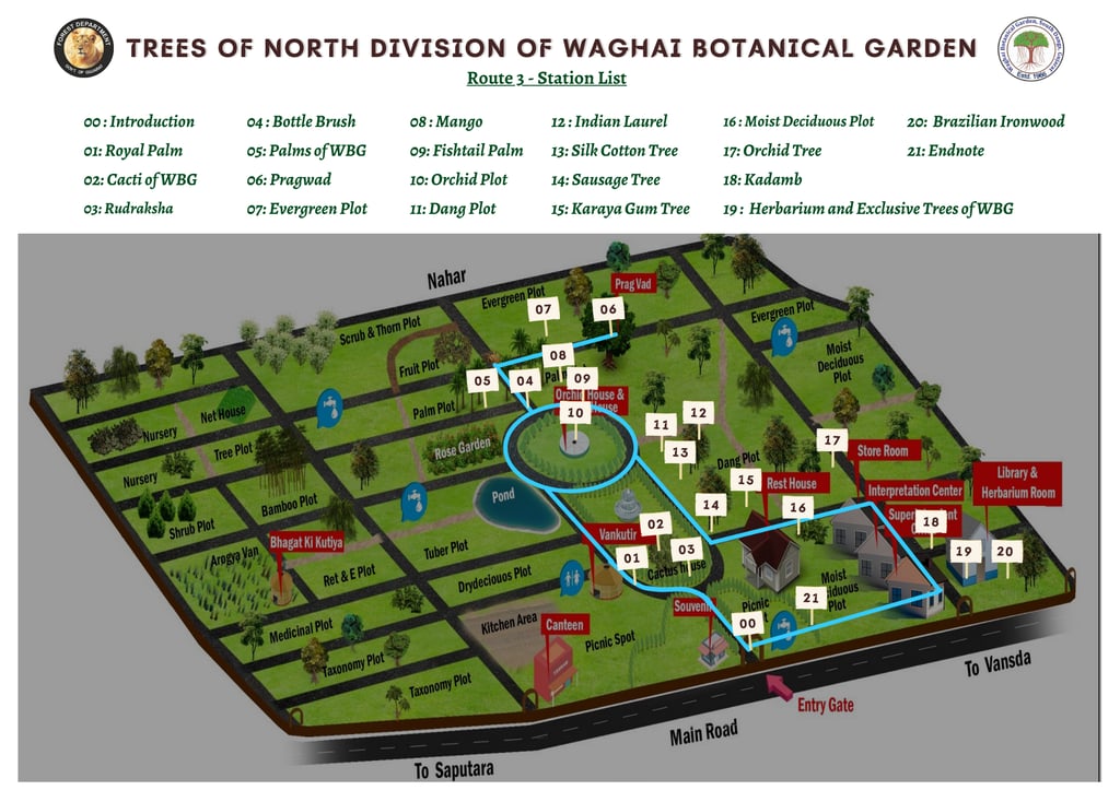 This audio guide fulfills the project's key objectives: identifying important tree species across three routes and delivering engaging content about the garden's sub-divisions and unique features. Each route features 20 stations with 40-60 second narrations available in English, Hindi, and Gujarati.